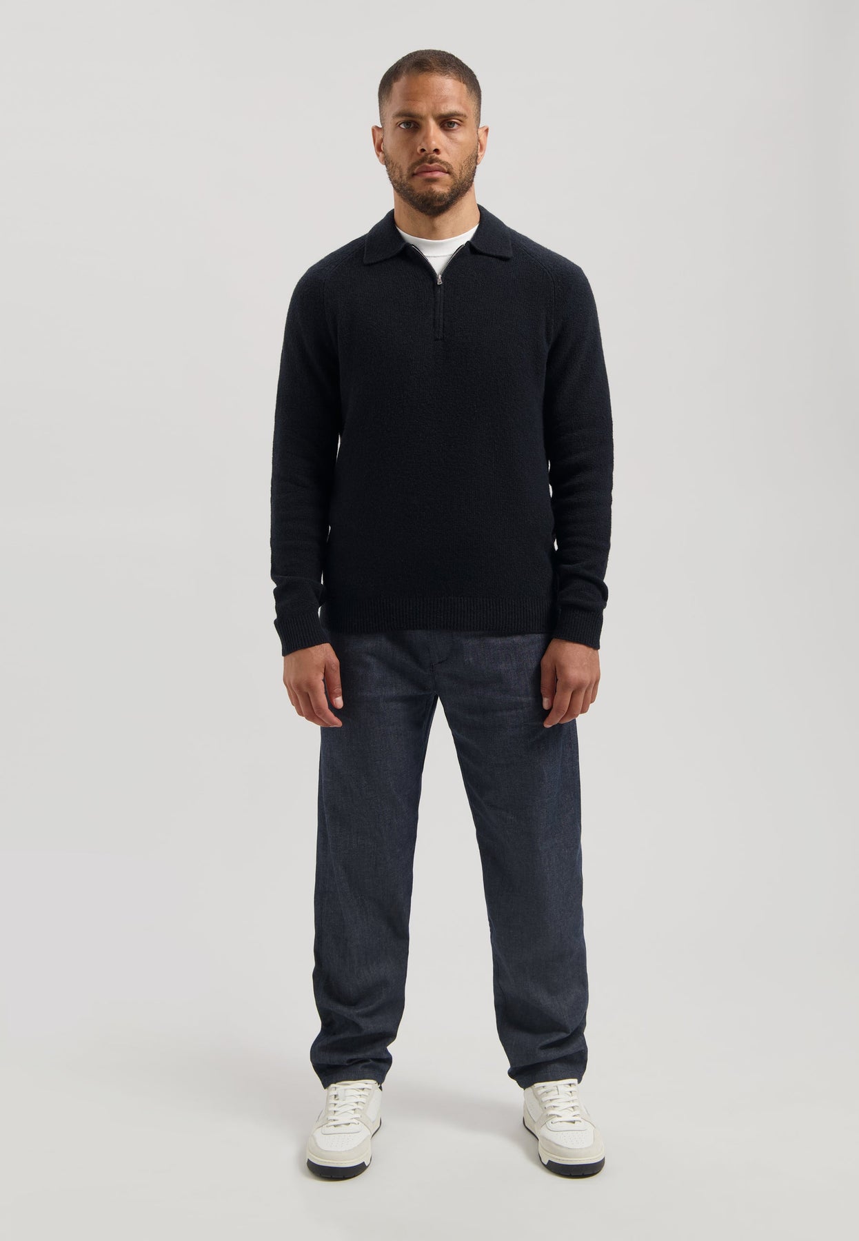 Le Yvain Polo en bouclé doux – matière texturée aux fils bouclés, au toucher riche et original. Fermeture zippée et manches raglan pour un look actuel et une coupe décontractée. Un mélange élégant de texture et de modernité.
