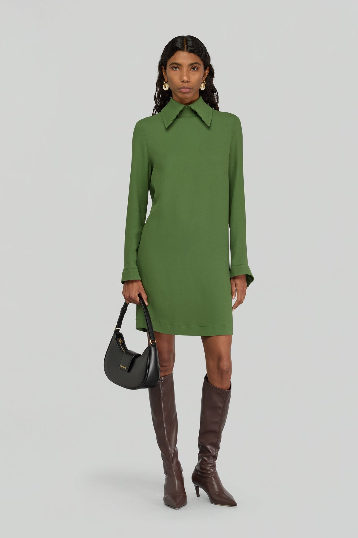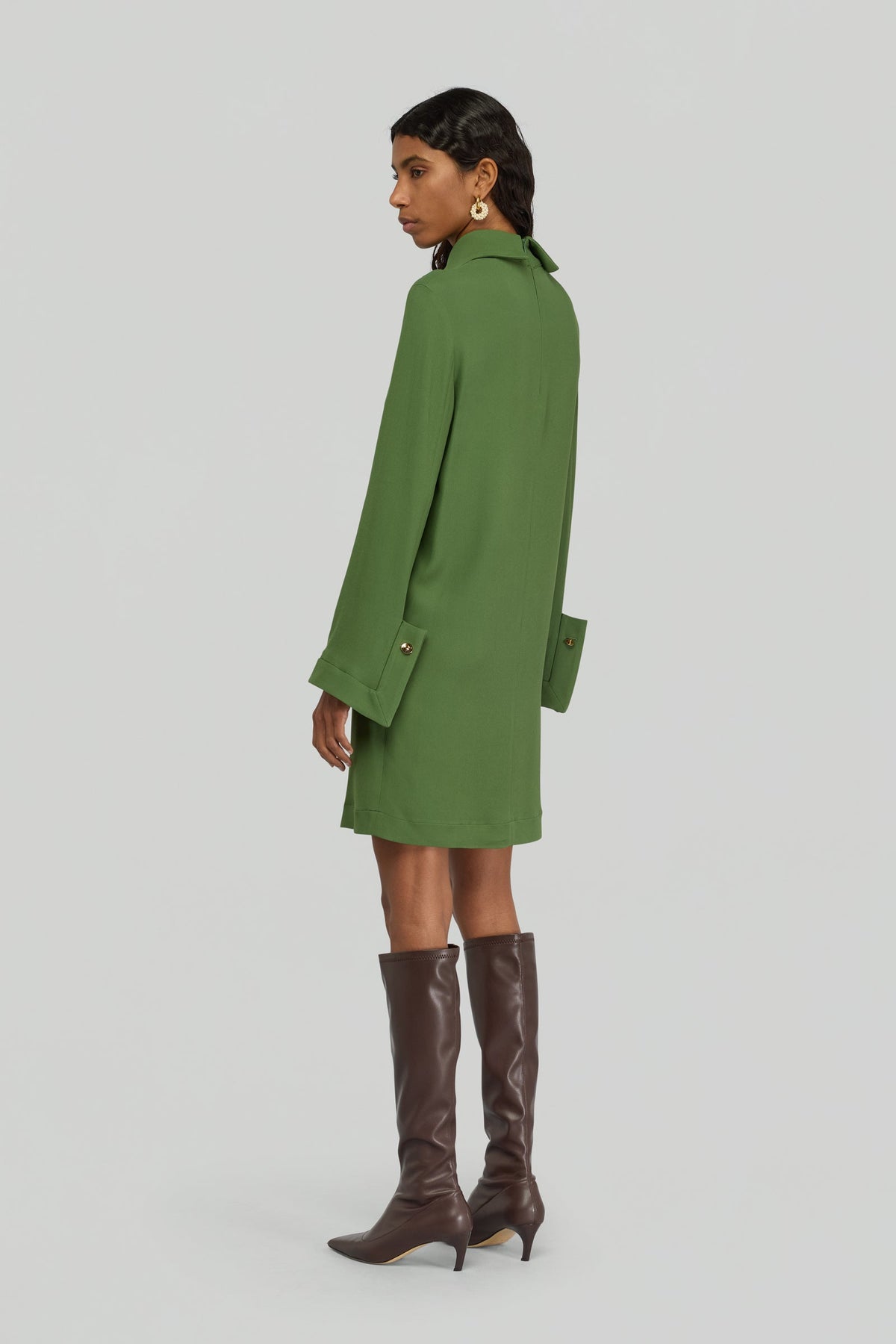 Robe en cadi de viscose. Col classique, poignets resserrés, coupe standard, longueur genou.