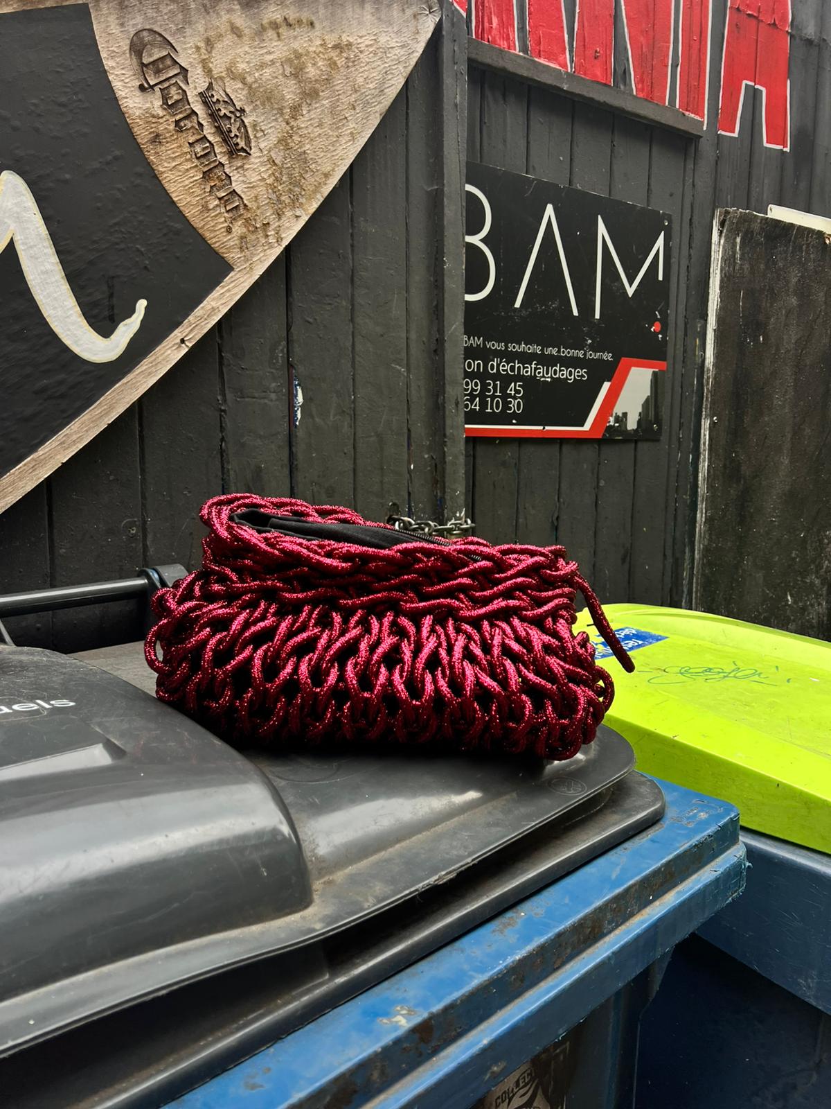 Hand-woven pouch made from natural waxed cotton rope Handrail Waxed cotton lining Zipper closure