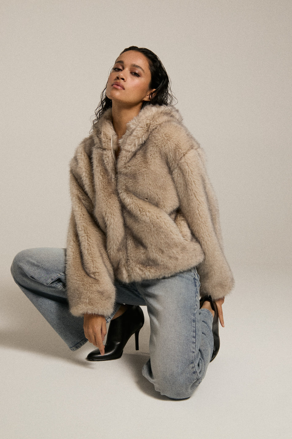 Enveloppez-vous de chaleur et d'un style urbain avec la veste en fourrure couleur sable mélangé. Cette pièce confortable et tendance est dotée d'une fausse fourrure ultra-douce et d'une silhouette décontractée alliant confort et style audacieux. Dotée d'une capuche fonctionnelle et d'une doublure ton sur ton, elle est idéale pour les saisons plus fraîches.