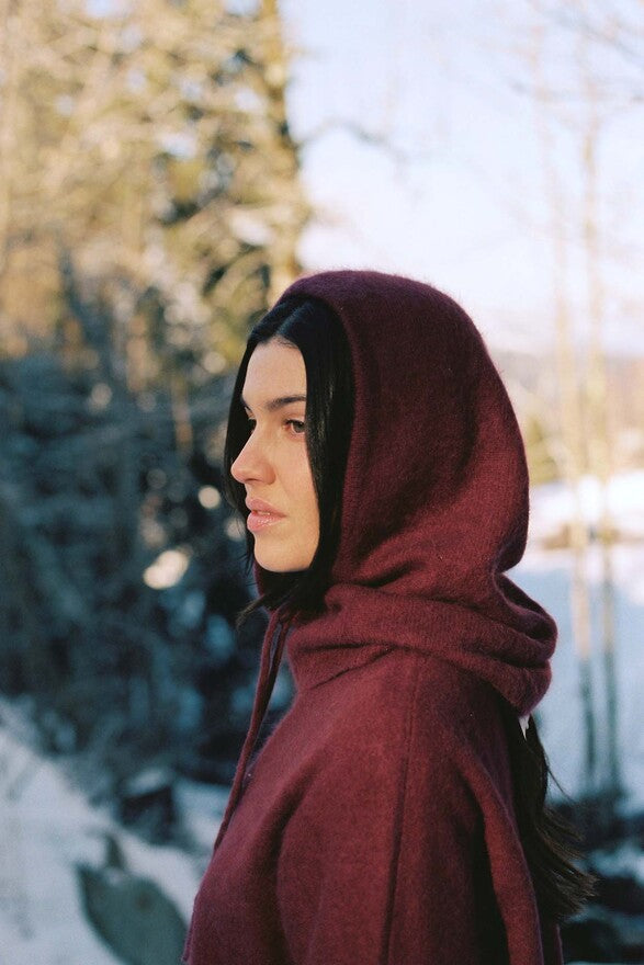 Notre cagoule avec bords côtes a été tricoté dans un fil composé de 70% Laine et 30% Cachemire brossé GG7, ce fil brossé donne un effet nuage et tout doux. Cette matière est le coup de cœur de nos clientes cette saison, disponible dans une large palette de couleurs de saison. Il a été crée à Paris, son fils vient de Mongolie Intérieure et il a été tricoté en Chine avec le plus grand soin.