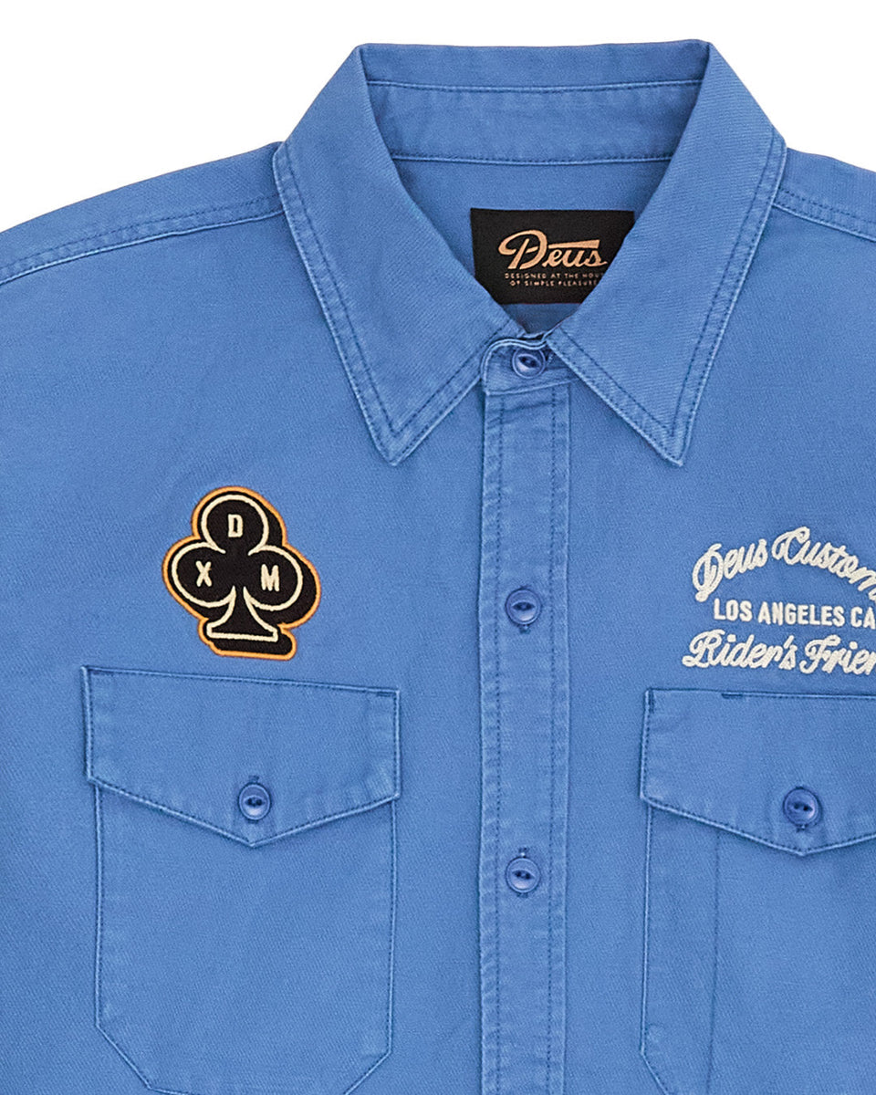 Nourrie par le café des ravitaillements routiers et des autoroutes depuis longtemps oubliées, la sensibilité universitaire côtoie une nostalgie teintée de pétrole. La chemise Picklock, coupe standard, habille les motifs brodés de l'esprit d'équipe d'un confort impeccable.