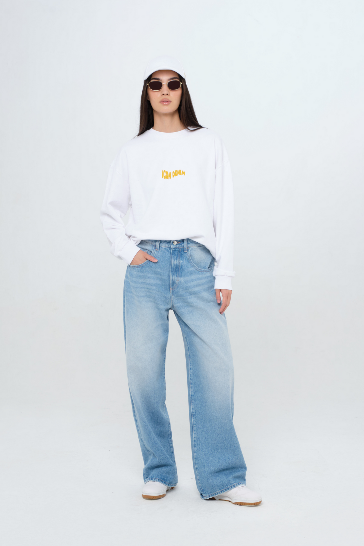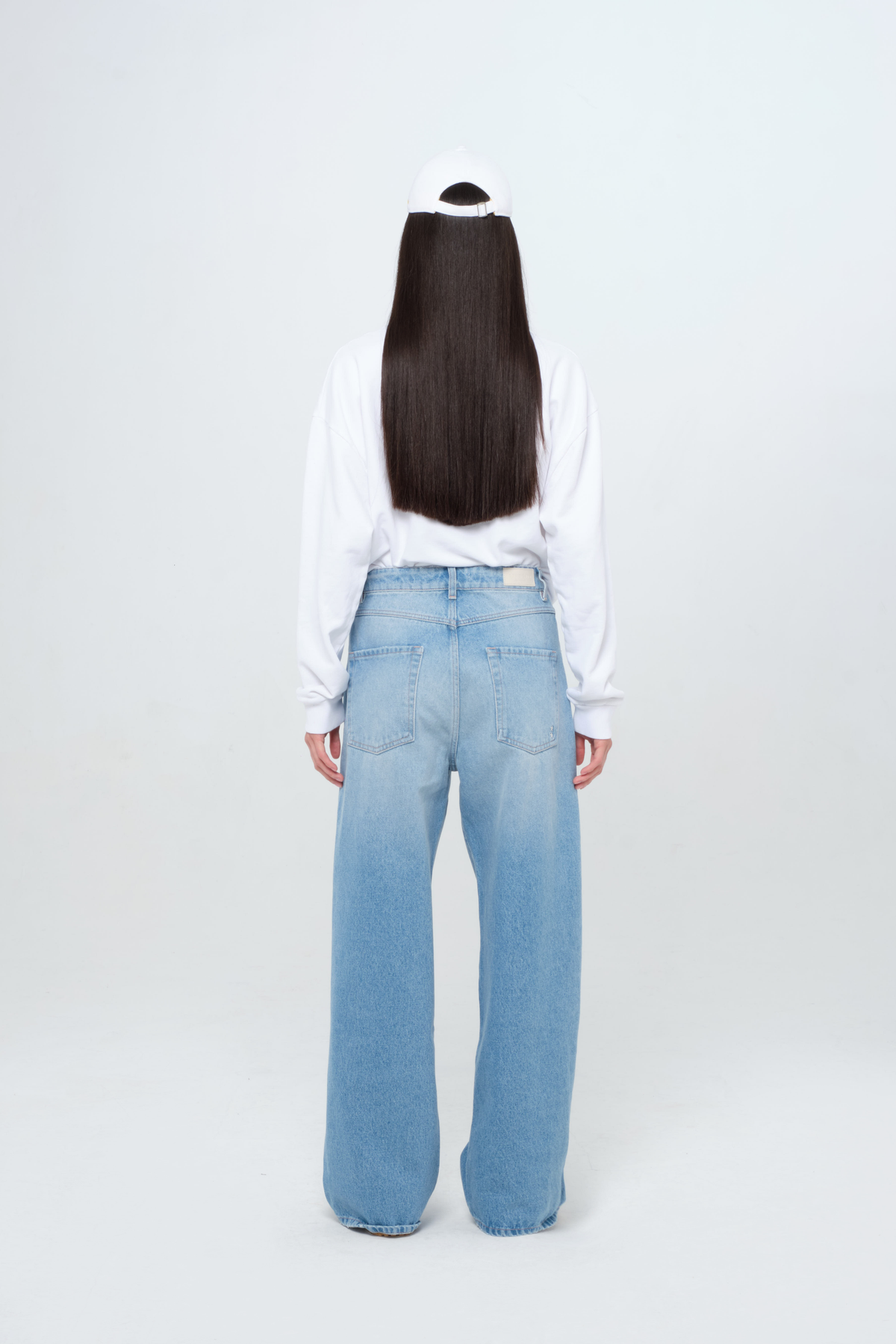 Découvrez Poppy Eco, le jean large emblématique pour femme d'ICONDENIMLOSANGELES, confectionné en denim 100 % coton biologique rigide.
