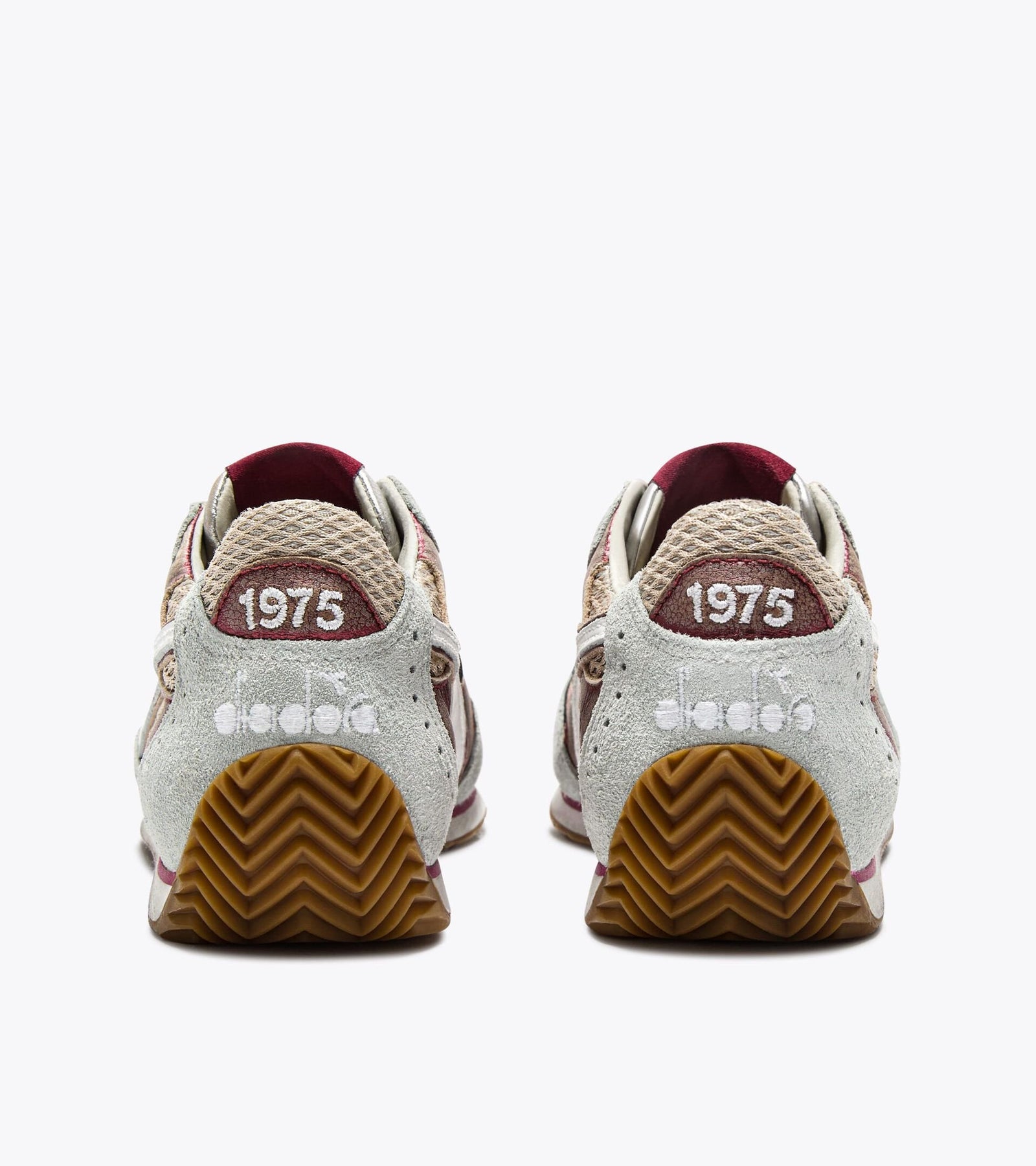 Un mélange de textures étudié pour une sneaker unique : L’Equipe Revenge Italia Used est confectionnée en daim duveteux, avec du mesh premium et du cuir lamé, rehaussé par un traitement stone wash spécial. Une salissure avec le traitement light wax est réalisée sur l’ensemble de l’empeigne. Une sneaker qui non seulement écrit l’histoire, mais l’anticipe.