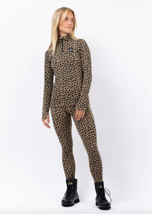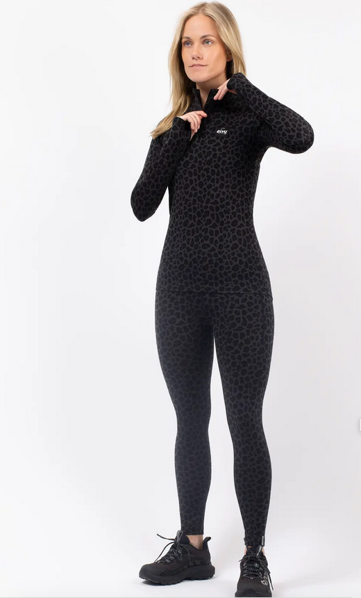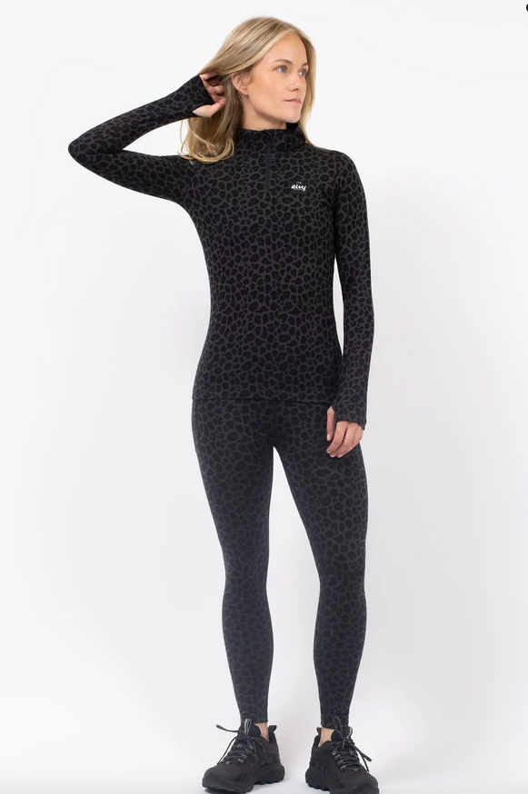 Notre modèle Journey en laine mérinos noir à imprimé léopard est une couche de base en laine mérinos à la coupe ajustée et près du corps, avec un col zippé plus court. Idéal pour les pistes, l'après-ski, la course à pied et au quotidien, sa construction en laine mérinos offre une isolation et une respirabilité naturelles. Sa coupe ajustée permet de superposer les couches par temps froid, tandis que les passe-pouces intégrés maintiennent les manches en place sous d'autres couches.